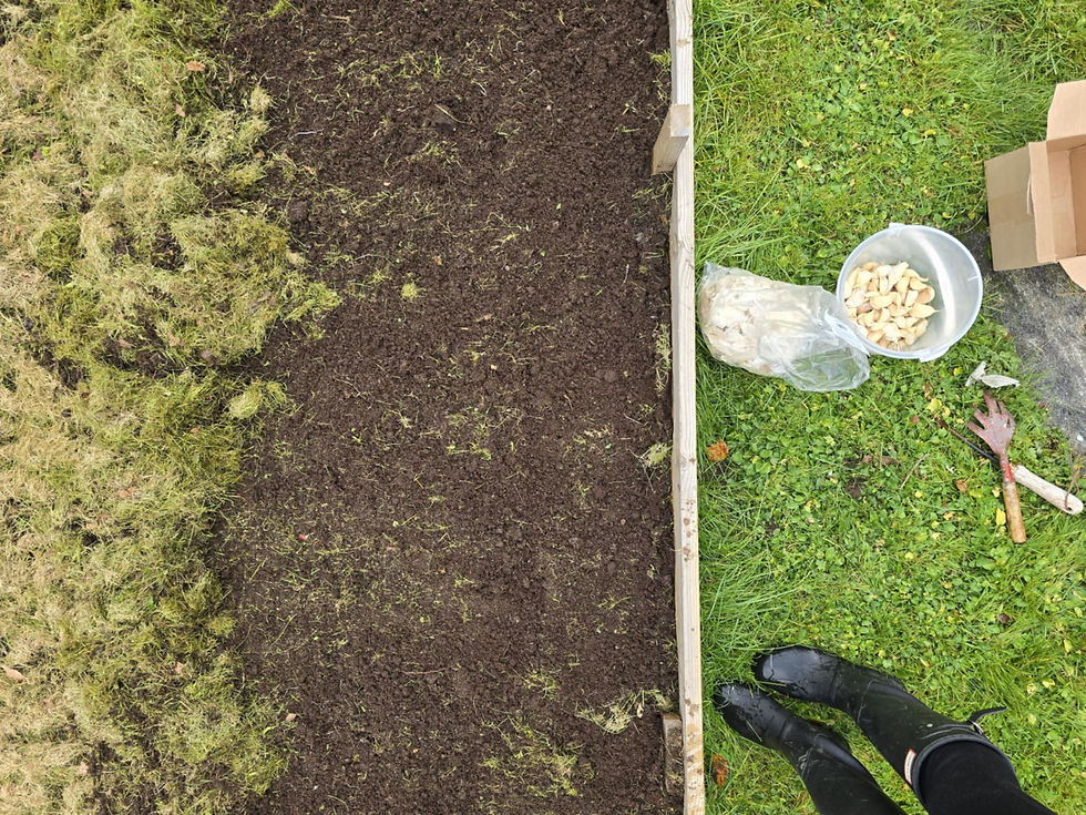 Denne enkle blandingen gir jorda både nøring og bedre struktur, samtidig som den er helt naturlig og lett å lage av ting vi ellers ville kastet. Nå ligger bedet klart, og snart skal små hvitløksfedd få finne veien ned i jorda, klare til å overvintre og spire til våren.